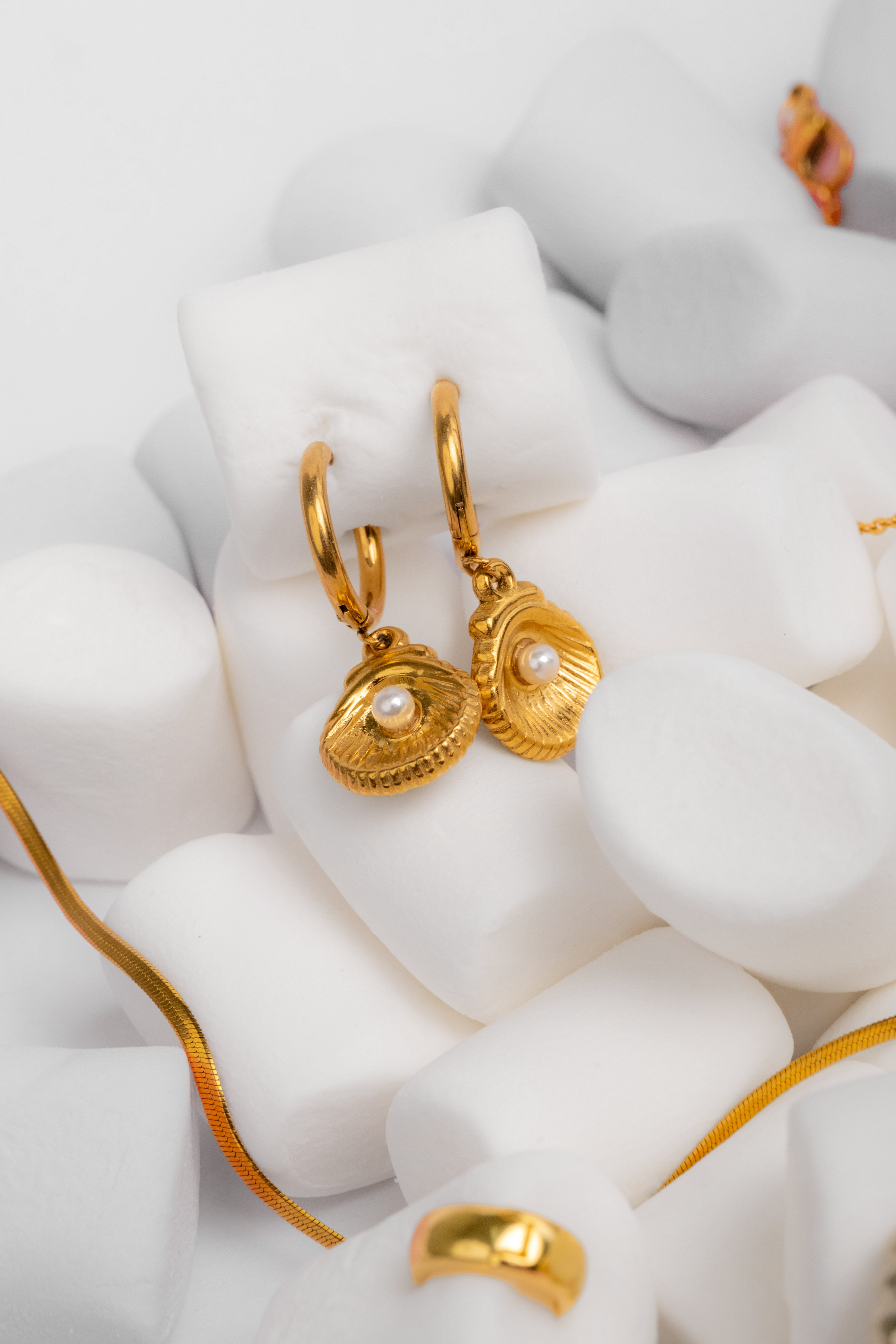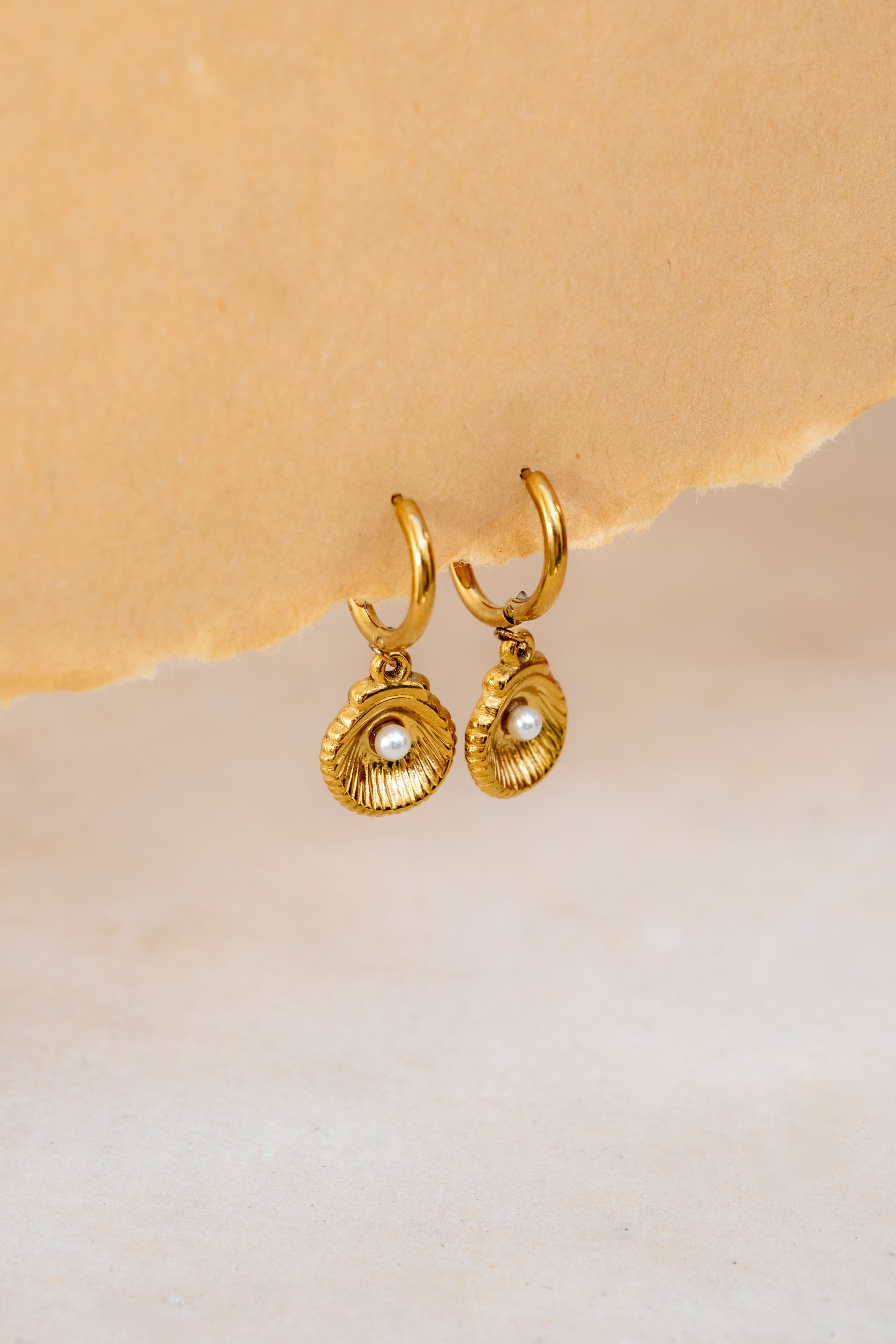 Our Isla Shell & Pearl Hoops feature delicate gold-plated huggies adorned with a mini shell charm and a luminous faux pearl. Lightweight, timeless, and effortlessly feminine — the perfect accessory to take you from sunrise swims to sunset dinners.